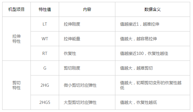拉伸特性和剪切特性数据将影响风格手感的“弹力”“张力”。这些特性将影响“形态稳定性”“易产生纹路性”。